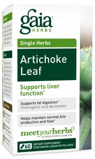 Artichoke LeafGood digestion is the foundation of good health. Studies indicate that Artichoke extract helps maintain normal bile production, supporting fat digestion and metabolism. Gaia Herbs extracts Organic Artichoke and concentrates it to validated levels of chlorogenic acid derivatives, the naturally-occurring polyphenols that support metabolism.Supports fat digestionHelps maintain normal bile production and flowSupports liver functionSuggested Use As a dietary supplement Take 2 capsules 2 times daily before a meal or as directed by your healthcare professional.Supplement FactsServing Size: 2 CapsulesServings Per Container: 30Amount Per Serving% Daily Value***Total Alcohol Free Extract1000 mg*Artichoke leaf (Cynara scolymus)Validated Full Spectrum Profile75 mg*Chlorogenic acid derivatives*Daily Value not established***Percent Daily Values are based on a 2,000 calorie dietOther Ingredients: Vegetable glycerin, capsule (vegetable cellu